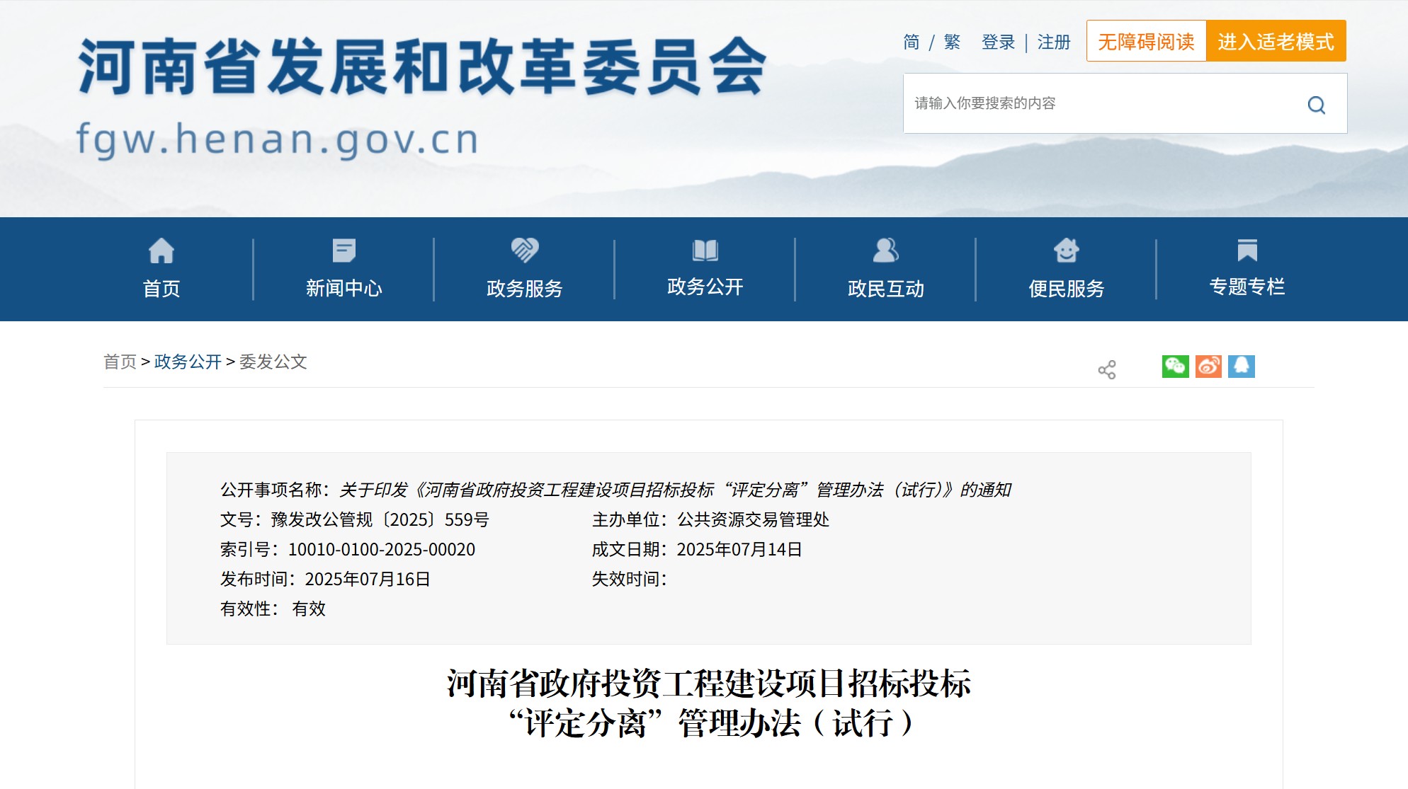 河南省發(fā)布《河南省政府投資工程建設(shè)項(xiàng)目招標(biāo)投標(biāo)“評(píng)定分離”管理辦法(試行)》